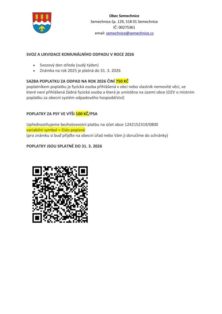 Poplatky za odpad a psy pro rok 2026